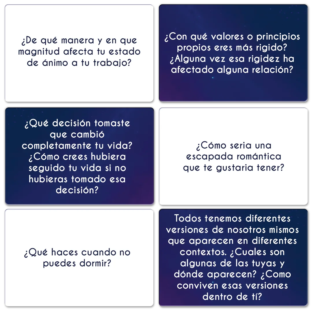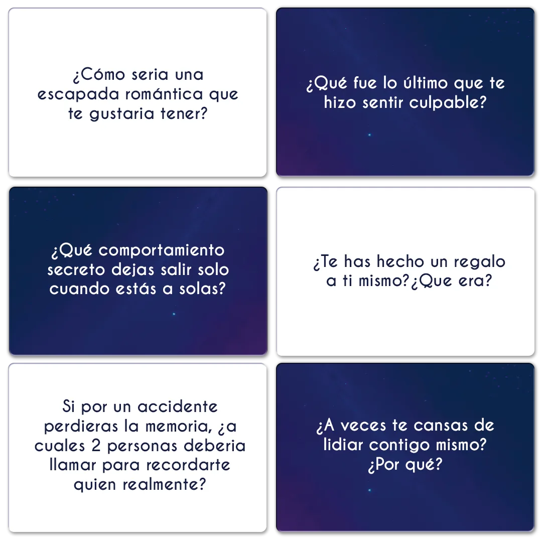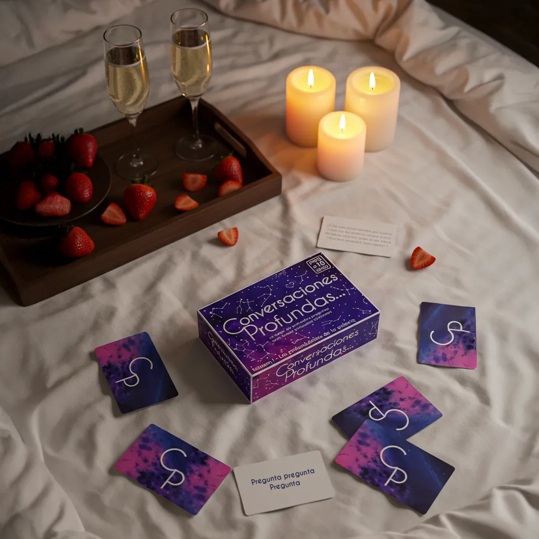 No hace falta una gran noche para conectar, solo una buena pregunta. Conversaciones Profundas es un juego distinto: no se trata de ganar, sino de conocerse. Cada carta abre un tema, una historia o una emoción. Jueguen en pareja, con amigos o incluso solos, en un ambiente tranquilo y con tiempo para escuchar.